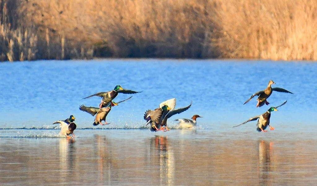 Gerade im Winter rasten zahlreiche Wasservogelarten an offenen Gewässern unserer Heimat. Sie weichen Schnee und Eis meist nur soweit aus, wie es die Kälte erfordert und sie Nahrung finden. So sind derzeit auch Arten zu sehen, die den Sommer in ihren Brutgebieten im hohen Norden verbringen. Mit ein wenig Glück könnten sich sogar schon Kraniche am Gewässer aufhalten, die aufgrund des derzeit milden Winters schon den Rückzug nach Norden antreten.
